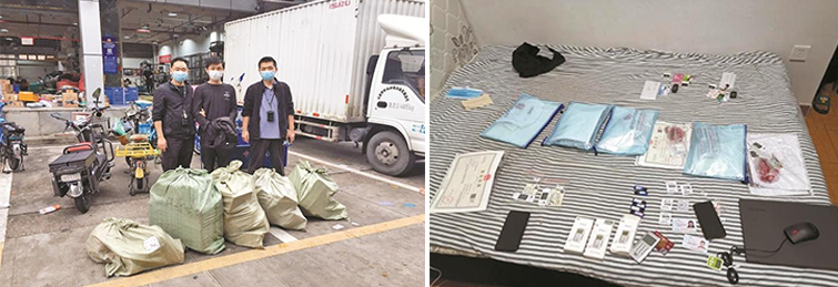 福田分局在抓獲1名參與涉案贓款取現(xiàn)的嫌疑人后,經(jīng)連夜審訊又挖出2名為電信詐騙犯罪提供對公賬戶以及賣國家機(jī)關(guān)公文印章的“幕后上家”;同時,還在福田區(qū)抓獲一名專門幫助詐騙分子收卡、送卡的快遞行業(yè)“內(nèi)鬼”(某快遞公司福田村代理點負(fù)責(zé)人趙某光),專案組民警據(jù)其供述雷霆出擊,抓獲其上家邱某翔、送貨司機(jī)王某龍二人,該二人對受境外在逃人員林某某指使,將全國各地收購的個人銀行賬戶和對公賬戶通過趙某光轉(zhuǎn)運(yùn)至境外,用于電詐、網(wǎng)絡(luò)賭博、洗錢等違法犯罪行為供認(rèn)不諱。